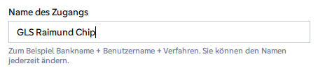 Den Namen des Zugangs sollten Sie auch anpassen, sofern der nicht selbsterklärend ist.