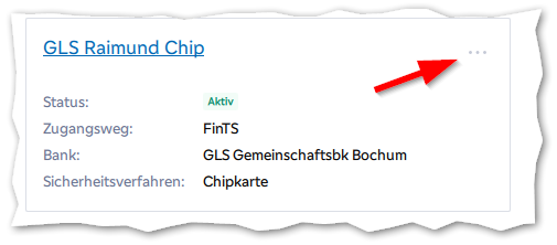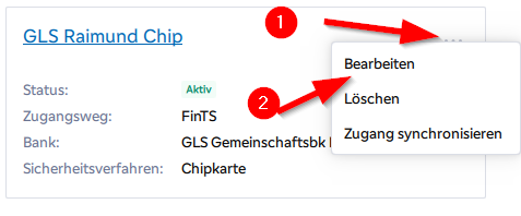 Einen vorhandenen Zugang bearbeiten können Sie über die drei Punkte neben dem Namen Ihres Bankzugangs.