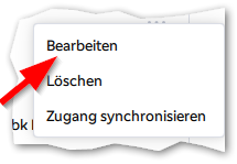 markieren Sie in der Liste das Konto und wählen Sie Bearbeiten aus oder Doppelklick.