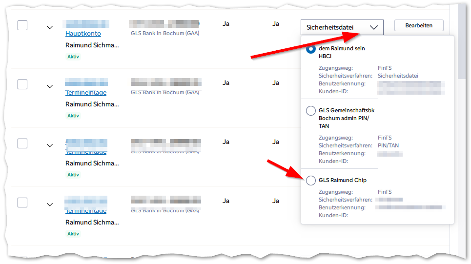 vorhandene Konten auf den neuen Zugang umstellen. Melden Sie sich ggf. mir Ihrem Benutzer an.