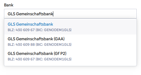 Geben Sie die Bank an, ich nutze immer die BLZ, aber auch IBAN oder BIC funktionieren.
