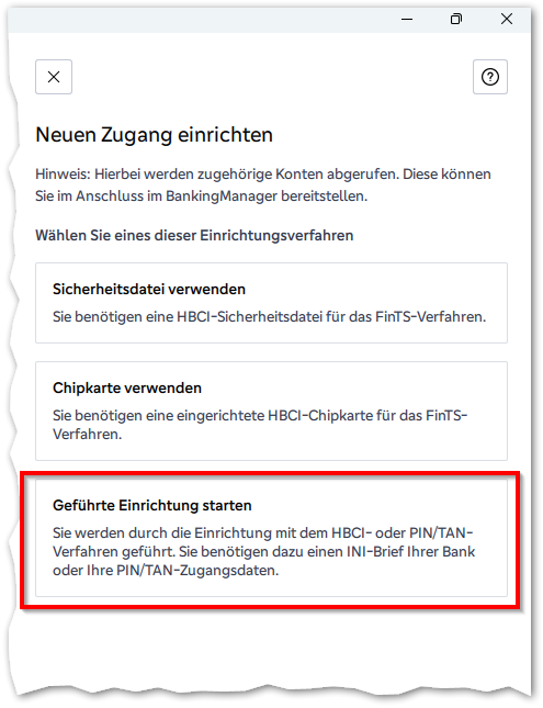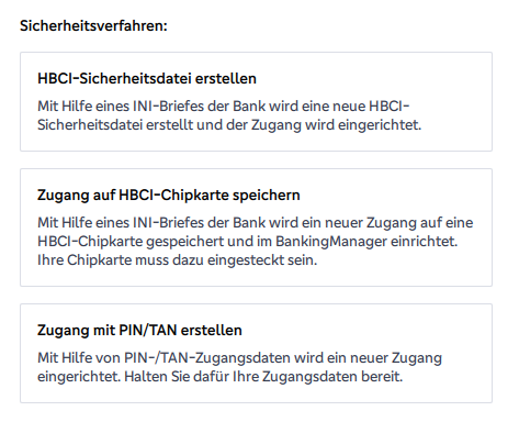 Hier auf der Seite geht es um die Einrichtung eines komplett neuen HBCI-Zugangs – wenn Sie eine vorhandene Sicherheitsdatei einrichten möchten, sind Sie hier besser aufgehoben.