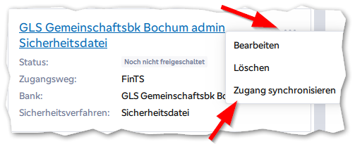 Nach der Freischaltung müssen Sie nur noch den Zugang synchronisieren, hier werden Sie wieder nach dem Passwort gefragt.