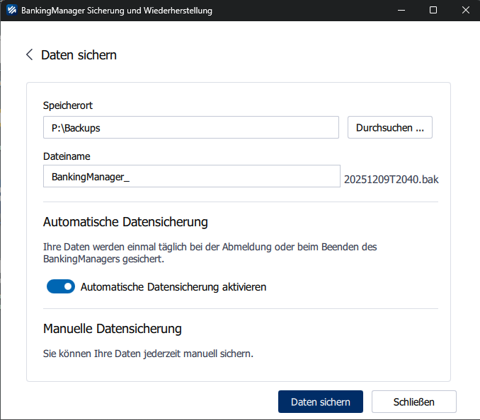 Klicken Sie anschließend auf „Daten sichern“.