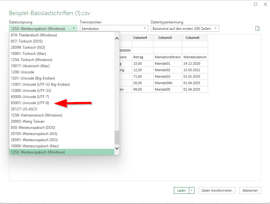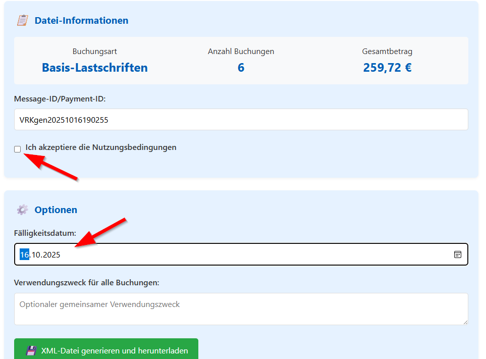 Prüfen Sie, ob Ihr Softwareanbieter eine neue Version anbietet und Updates/Aktualisierungen. Da die letzten Spezifikationen erst im Sommer 2025 veröffentlicht wurden (!), muss Ihre Software sehr neu sein. Ältere Versionen werden sehr wahrscheinlich Probleme bei Überweisungen haben.