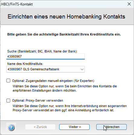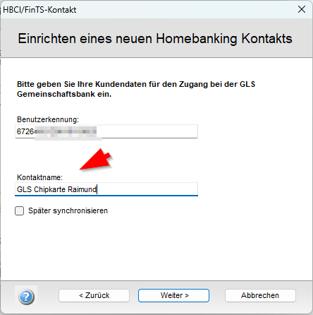 Wenn Sie mehrere (Bank-)Zugänge haben oder auch mehrere Personen die Software nutzen, vergeben Sie nun einen sprechenden Namen.