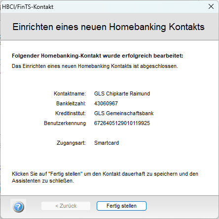 Mit „Weiter“ schließt die Software den Vorgang ab. Haben Sie eine brandneue Karte eingerichtet, dann wurde Ihre Zugang nun auch initialisiert, das heißt, dass die Bank jetzt den Schlüssel der Karte kennt.