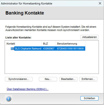 Einen neuen HBCI-Zugang mit Signatur-Chipkarte richten Sie in GLS eBank / windata in zwei Minute nein.