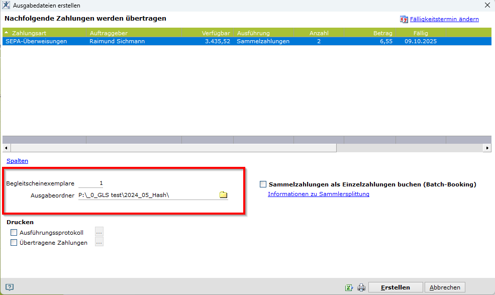 Rechts können Sie mit dem Button „Erstellen“ die Generierung der Buchungsdatei starten.
