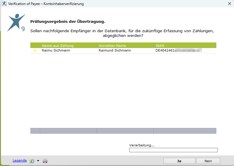 Im Protokoll wird aufgeführt, ob der Namensabgleich erfolgt ist.