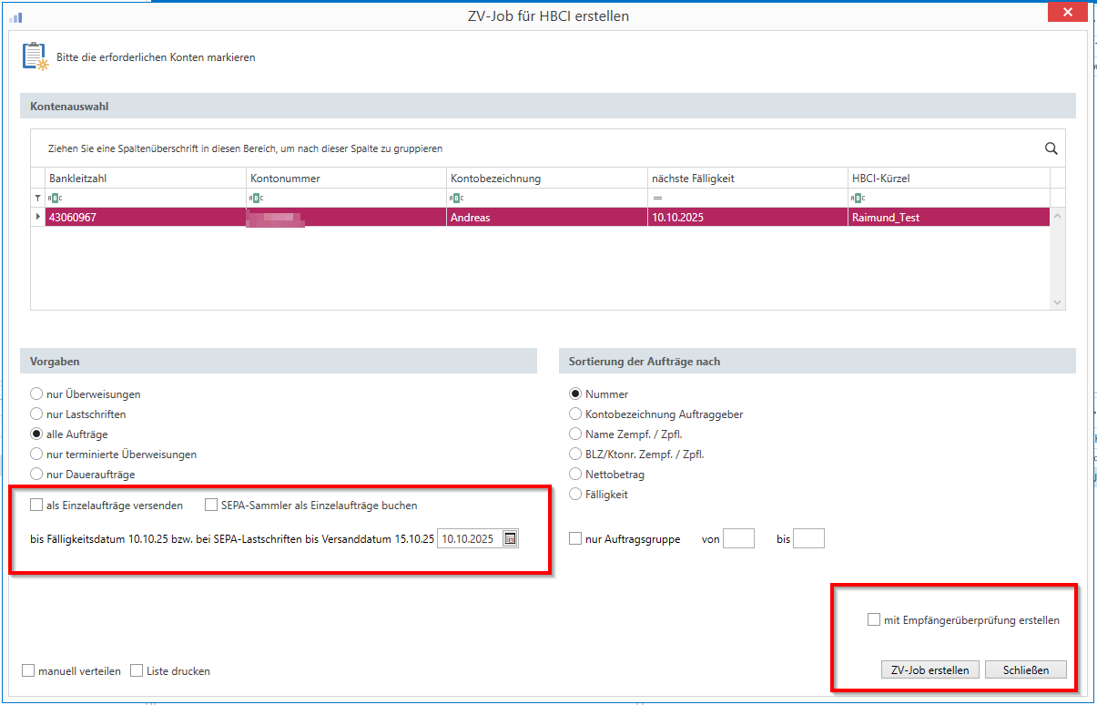 Empfängerprüfung Voreinstellung am Konto ein- oder abschalten