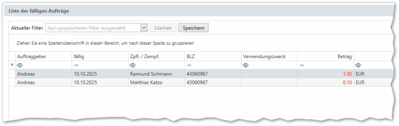 Wenn Überweisungen als Einzelbuchungen generiert werden, muss die Namensprüfung erfolgen.