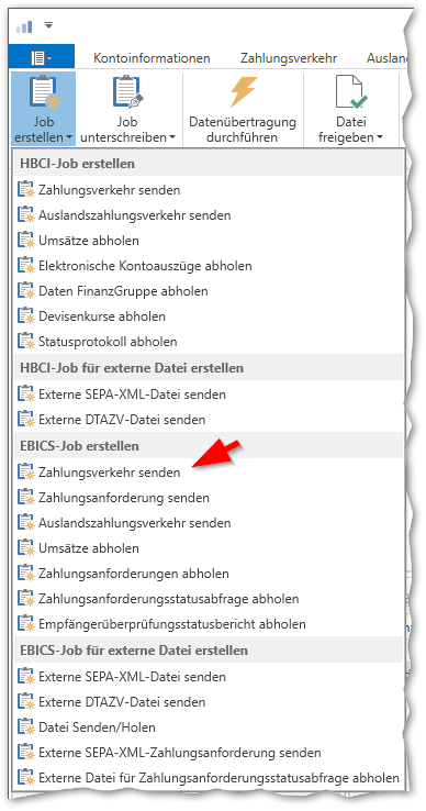 HBCI: Wenn Sie alleine zur Unterschrift berechtigt sind, können Sie direkt die Datentransfer einleiten.