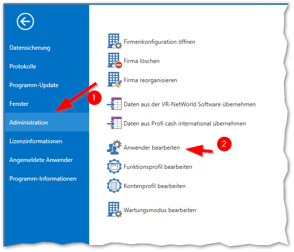 Es muss der Master oder jemand mit Profi cash-Adminrechten angemeldet sein. Sie finden die Anwenderverwaltung hinter dem Notizblock-Icon:
