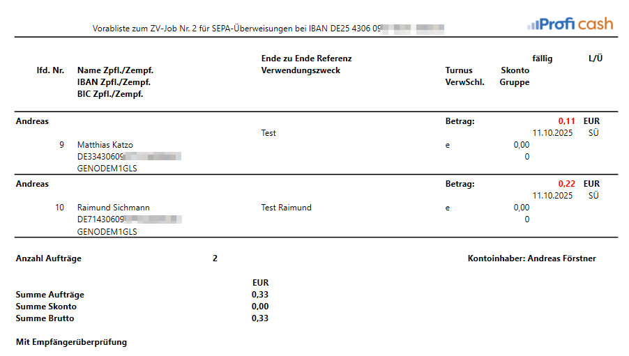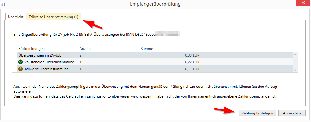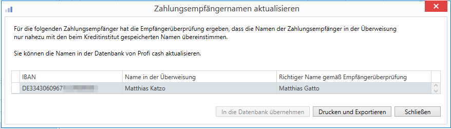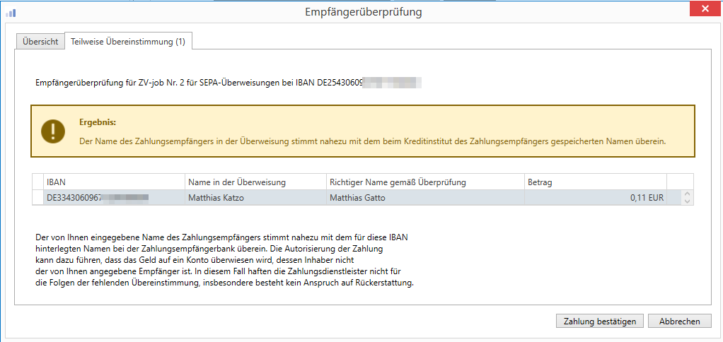 Ich bin mir hier beim Matthias sicher, dass seine IBAN ok ist und überweise den Auftrag trotz der Abweichung (Danke dafür!).