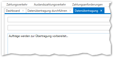Die Datenübertragung wird durchgeführt, der Bankdialog läuft…