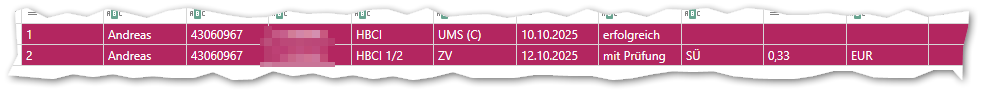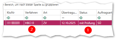 Eine von zwei nötigen Unterschriften sind für die HBCI-Namensprüfung für diesen Auftrag gesetzt.