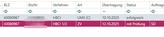 Markieren Sie nur den Buchungsauftrag, da Profi cash 12.97 hier einen Fehler hat und Probleme bekommt, wenn Sie direkt im gleichen Transfer den Umsatzjob abrufen!